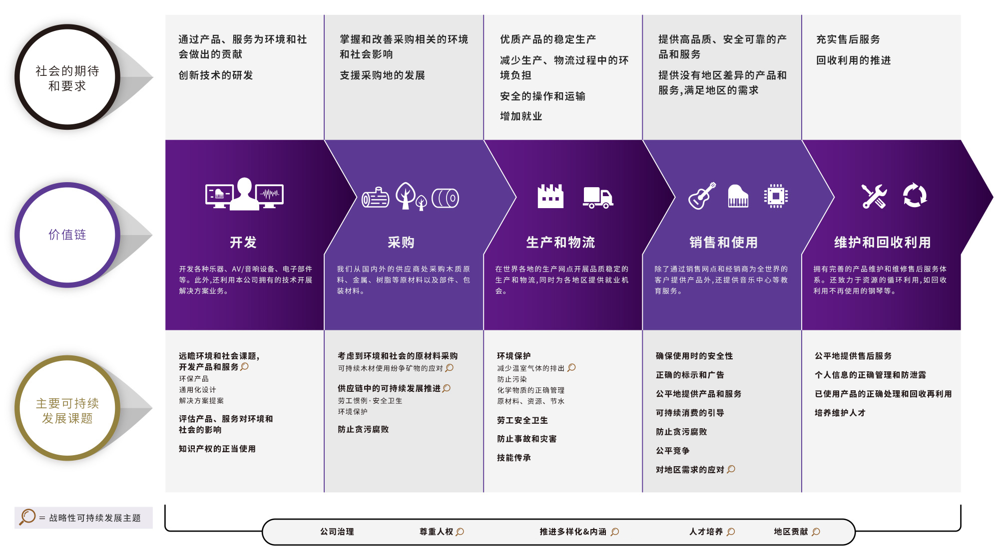雅馬哈以“與顧客更緊密地聯系”、“創造全新價值”、“通過事業為社會做出貢獻”這三個方針為今后的成長方向而努力。