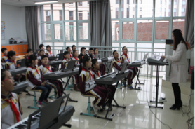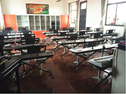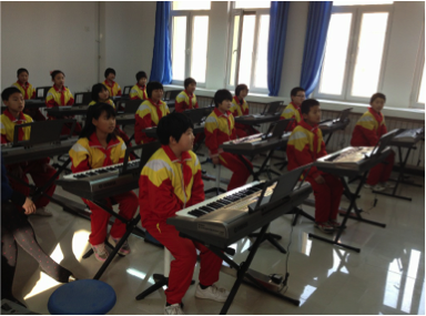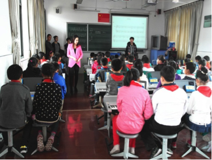 隨后我們轉(zhuǎn)移去了音樂(lè)教室,那里擺放著去年雅馬哈捐贈(zèng)的30臺(tái)電子琴。該校的音樂(lè)老師在一年時(shí)間里教會(huì)了孩子們彈簡(jiǎn)單的曲子,借此機(jī)會(huì)作了短小的匯報(bào)演出,林芝老師在一旁觀摩指導(dǎo)。同學(xué)們先分聲部抓準(zhǔn)了節(jié)拍,然后進(jìn)行合奏,效果出奇的好。雅馬哈捐贈(zèng)的樂(lè)器能獲得很大價(jià)值的使用,是對(duì)這項(xiàng)活動(dòng)良好的肯定。事后,林芝老師與學(xué)校的音樂(lè)老師交流了一下經(jīng)驗(yàn),對(duì)于如何更好地上音樂(lè)課都有了新的認(rèn)識(shí)。