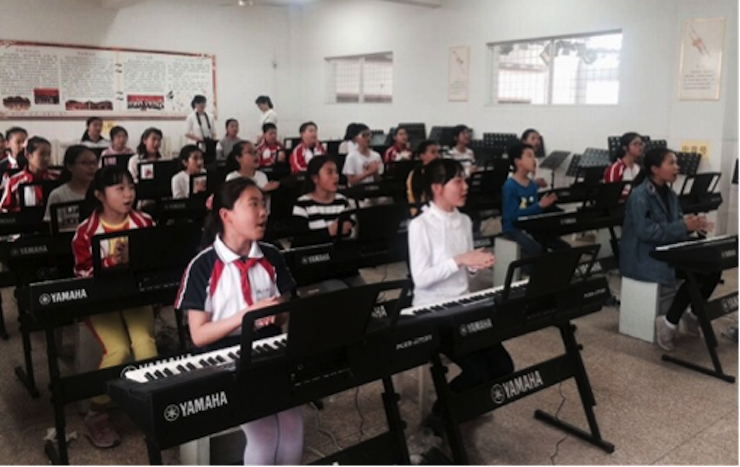 在音樂教育方面,因為每所學校的師資力量的差別,以及學生在音樂基礎及能力上參差不齊,課堂的教學碰到了一些難度。很多學生對于電子琴的操作比較陌生,但對于電子琴的喜愛卻是溢于言表。我們從學校老師那里了解到,學生之所以在音樂教育方面匱乏主要還是學校缺乏專業的指導老師,但目前學校正在計劃開展走讀制的興趣課程,在提升學生文化課的同時,也豐富學生的興趣愛好,到時會有更多的指導老師來指導學生,讓學生在音樂方面有更多的發展。