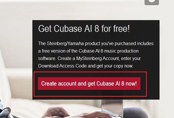 3.進去:(www.steinberg.net/getcubaseai),點擊“Create account and get Cubase AI 8 now”(創建賬號并獲取Cubase AI):