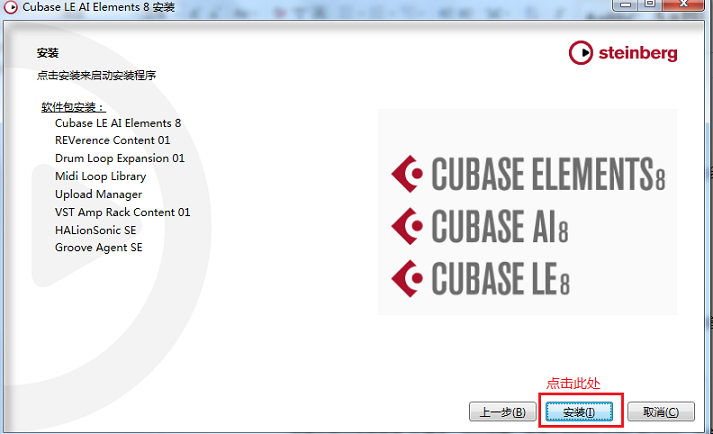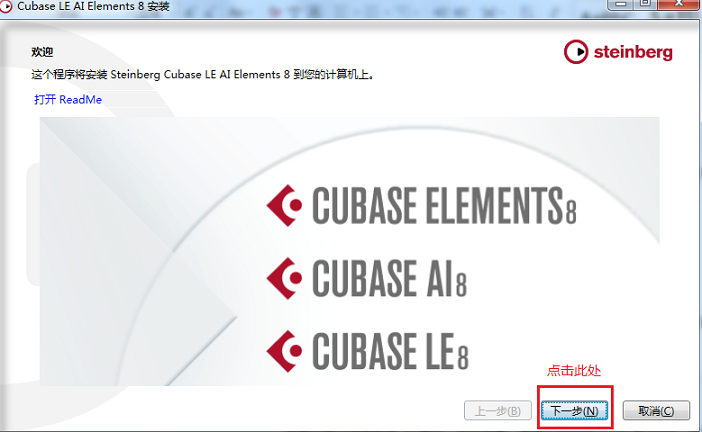 5. 更新完畢后進入Cubase AI 8安裝界面,點擊“下一步”: