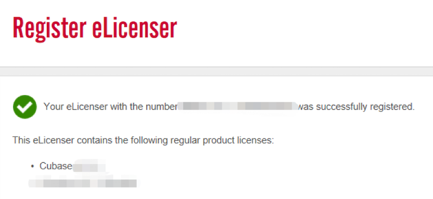 7. USB-eLicenser / Soft-eLicenser中的產品已成功注冊到您的MySteinberg賬戶
