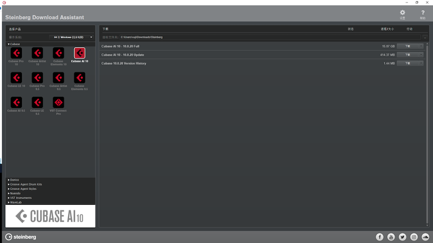 13. 安裝完成后,打開Steinberg Download Assitant,下載對應版本的軟件