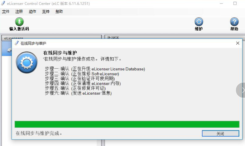 2. 打開“eLicenser Control Center”,若出現“在線同步維護”,則點擊“執行維護任務”,并等待在線同步與維護完成