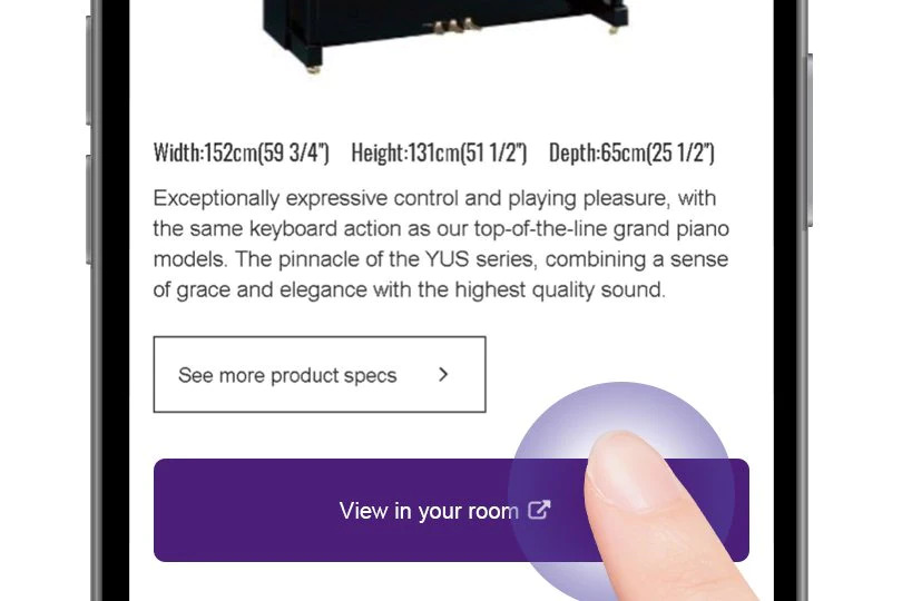 無需下載應用程序,即可您的智能手機或平板電腦上選擇您想要查看的鋼琴型號,甚至拍下它在您房間里的樣子。