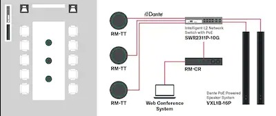 RM-TT的每個(gè)麥克風(fēng)內(nèi)均配備了自動(dòng)語(yǔ)音跟蹤功能(自動(dòng)發(fā)言人跟蹤功能),因此可以實(shí)現(xiàn)靈活的房間布局以及與會(huì)者位置。當(dāng)發(fā)言者處于多個(gè)RM-TT中時(shí),RM-CR將自動(dòng)選擇離發(fā)言者最近的麥克風(fēng)來(lái)拾音,從而將高清晰的語(yǔ)音傳輸?shù)竭h(yuǎn)端。