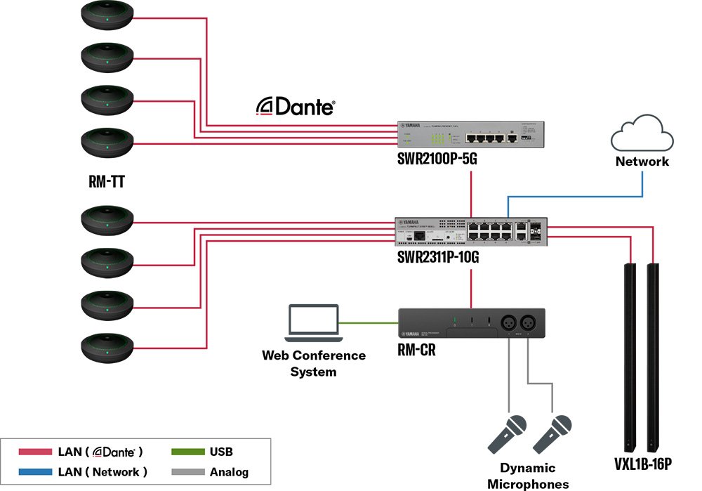 通過(guò)使用“Dante”網(wǎng)絡(luò)音頻協(xié)議,使用一根網(wǎng)線即可實(shí)現(xiàn)音頻及控制信號(hào)的傳輸,從而解決了布線和安裝的諸多不便。