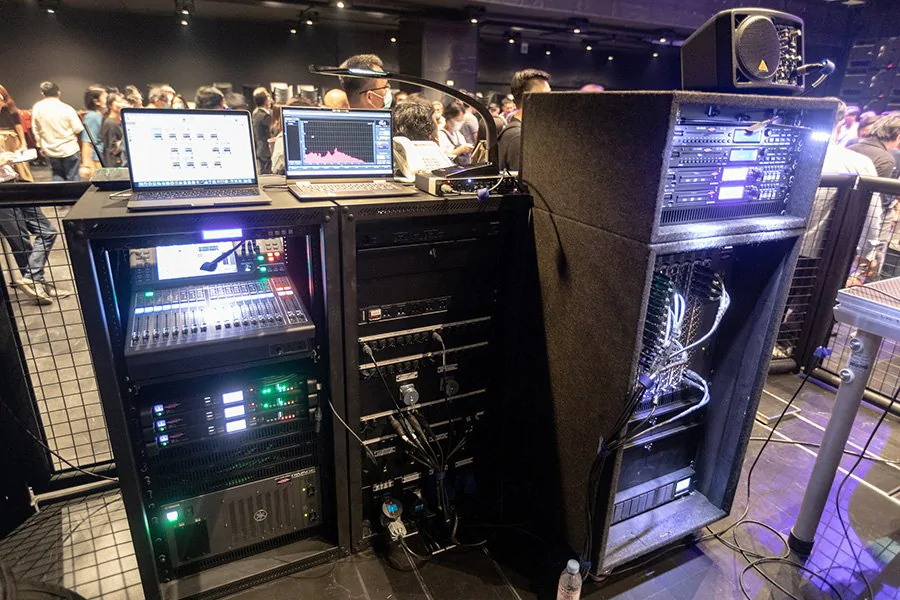 本地系統(tǒng)集成商對(duì)于開發(fā)至關(guān)重要,因此Honda向Yamaha Music Electronics Taiwan尋求建議。商議后,Honda指派NineTai Audio Group協(xié)助進(jìn)行音響系統(tǒng)設(shè)計(jì)和安裝。最終,在該場(chǎng)地選擇了NEXO STM線陣列音箱系統(tǒng)和雅馬哈RIVAGE PM10數(shù)字混音系統(tǒng),并使用Dante網(wǎng)絡(luò)來(lái)運(yùn)作整個(gè)音響系統(tǒng)。除了場(chǎng)地的設(shè)備管理外,NineTai Audio還為那些不帶巡演人員的藝術(shù)家和表演者提供音響工程師。