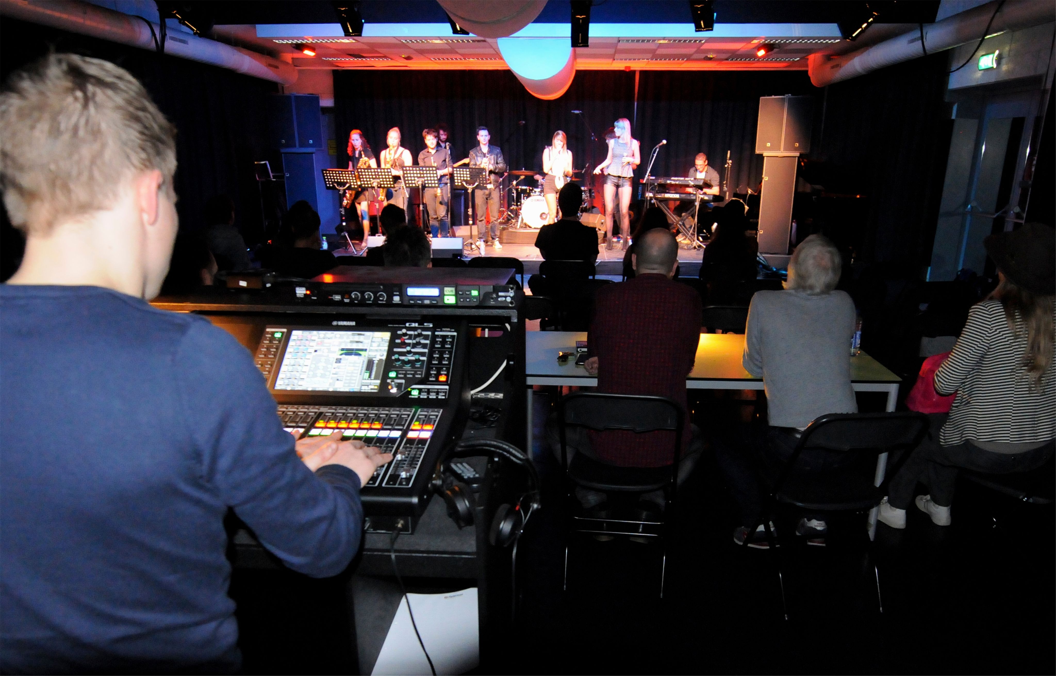 10月29日,8支學(xué)生混合樂隊(duì)在這個(gè)場地參加了表演考試,每支樂隊(duì)演奏四首樂曲,并由講師進(jìn)行評(píng)判,每位學(xué)生表演一種樂器。自由音響工程師Anco Jongsma與音樂學(xué)院設(shè)備經(jīng)理Harry Janssen合作,負(fù)責(zé)對(duì)表演進(jìn)行混音。