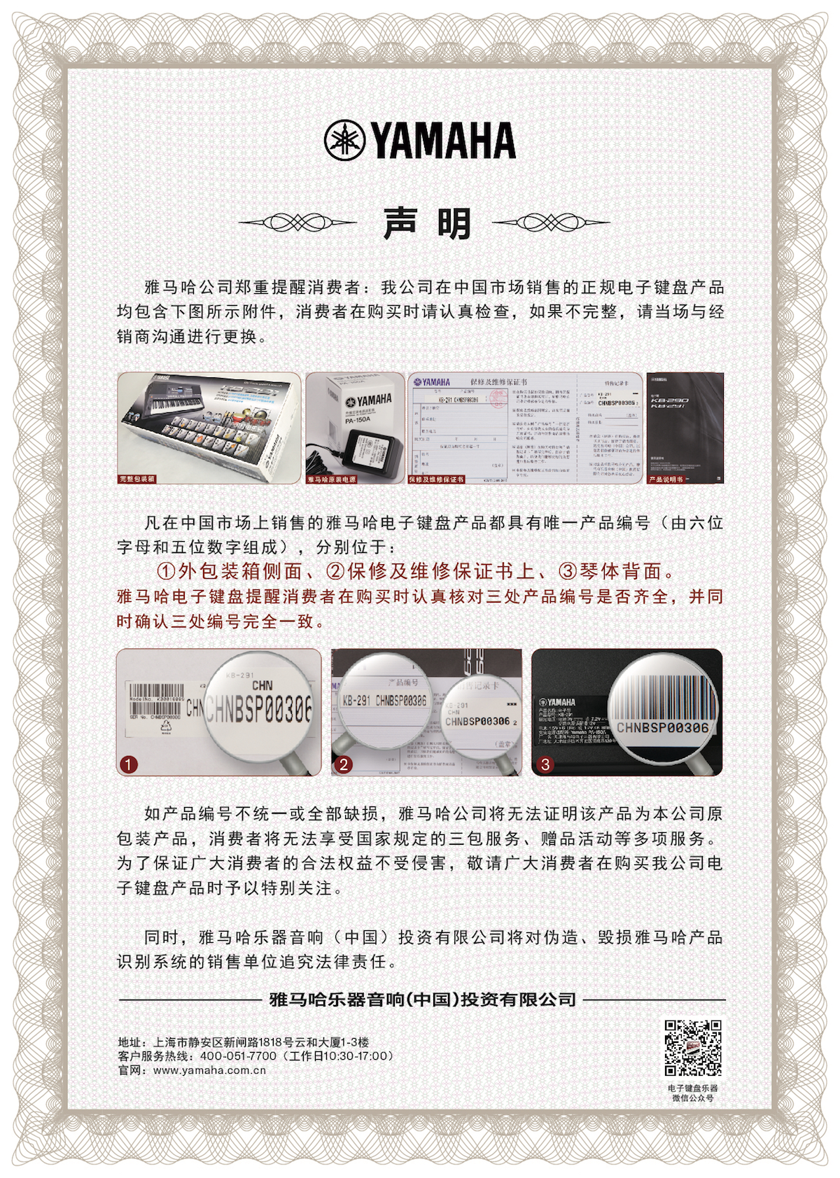 關于未授權認證商戶銷售假冒雅馬哈產品告知書
