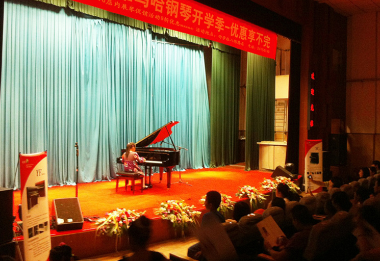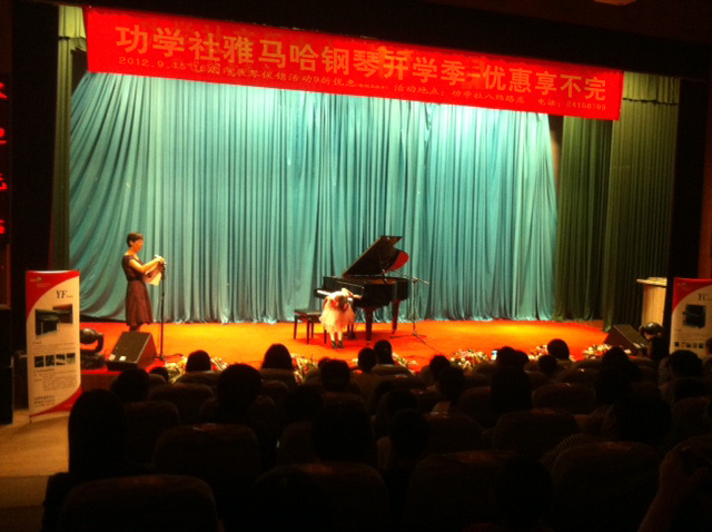 天津功學(xué)社于2012年9月18日在天津音樂學(xué)院音樂廳舉行了一場雅馬哈鋼琴展銷音樂會活動。此次活動邀請了天津音樂學(xué)院的老師以及琴童和學(xué)生家長到場觀摩。活動在音樂學(xué)院音樂廳舉行,給鋼琴學(xué)員創(chuàng)造展示水平的機(jī)會,并讓學(xué)生和家長近距離的感受雅馬哈鋼琴的魅力,體驗雅馬哈鋼琴的卓越性能,并有專業(yè)老師對演奏者進(jìn)行點評和指導(dǎo)。