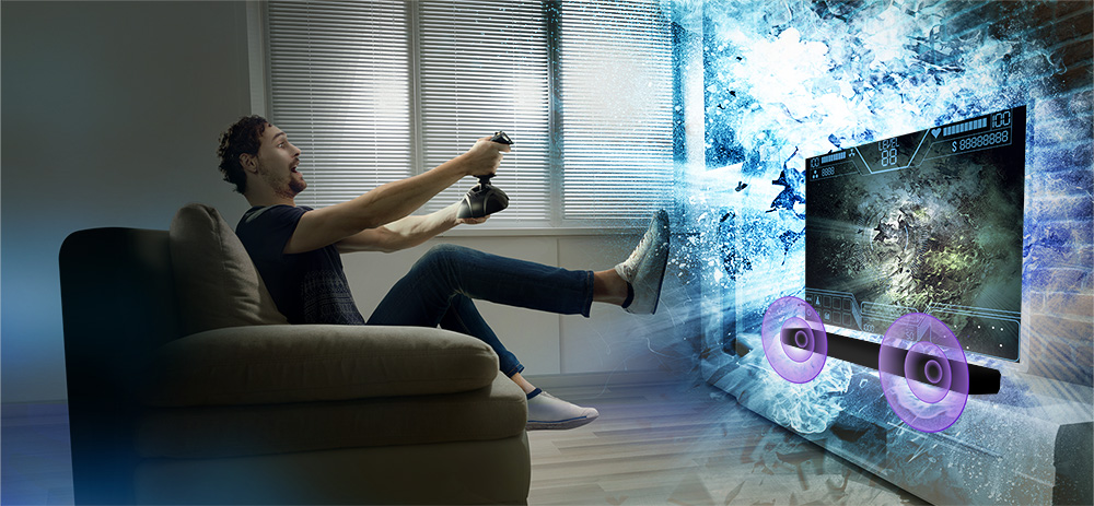 重現動作/射擊游戲的爆破音和槍聲。因為能夠聽見立體感的聲音,所以玩家的移動感和周邊的細微聲音也能完美感受。音樂游戲也能從前后左右、上方聽見聲音,猶如身臨其境于游戲的世界之中。
