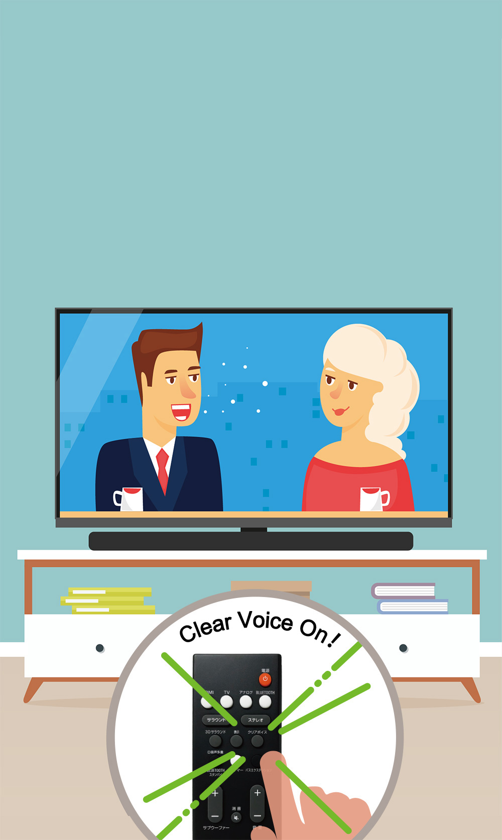 有沒有碰到過在家人熟睡的深夜收看電視時,小心翼翼的提高電視音量的時候?Clear Voice功能能夠使得在小音量的情況下也能清楚的聽到人聲,在不會打擾到周圍人的同時也能舒適的收看電視。
