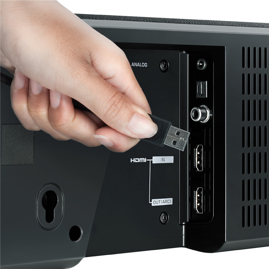 電視機和Sound Bar的連接,只需要一根HDMI線就OK了!沒有繁瑣的接線過程,順暢明白的設置,購入之后立即就能得到美妙的聲音。不僅如此,還搭載了HDMI-CEC功能,在關閉電視機的同時,Sound Bar的電源也會自動關閉。
