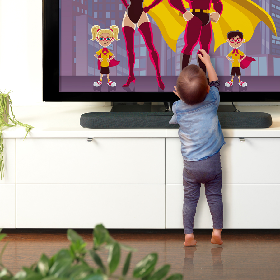 為了避免兒童觸碰到Sound Bar而產生誤操作,YAS108搭載了兒童鎖定功能。即使有兒童在電視機的周圍,也不用擔心,可以放心的收看電視。
