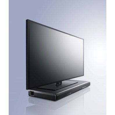 放置電視機裝置的頂部表面采用經過拉絲處理的高質感面漆。機身前端與側面采用平滑設計,結合了柔美的倒角和光亮的黑色飾面。其設計完美搭配任何電視機型,在任何空間范圍內均能彰顯時尚格調。