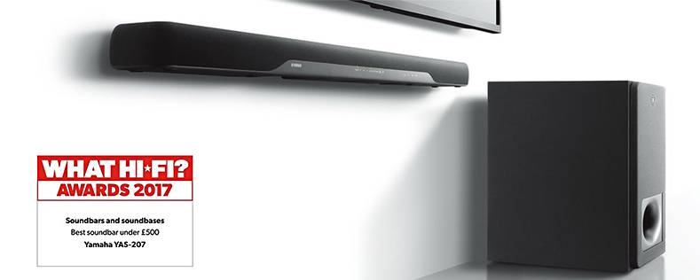 纖薄、美觀、簡約。YAS-207高度僅53 mm,可以放置在電視機前而不會遮擋圖像。觸摸式操作按鈕。掛墻安裝,會為您的室內裝飾增添精致的觀感。