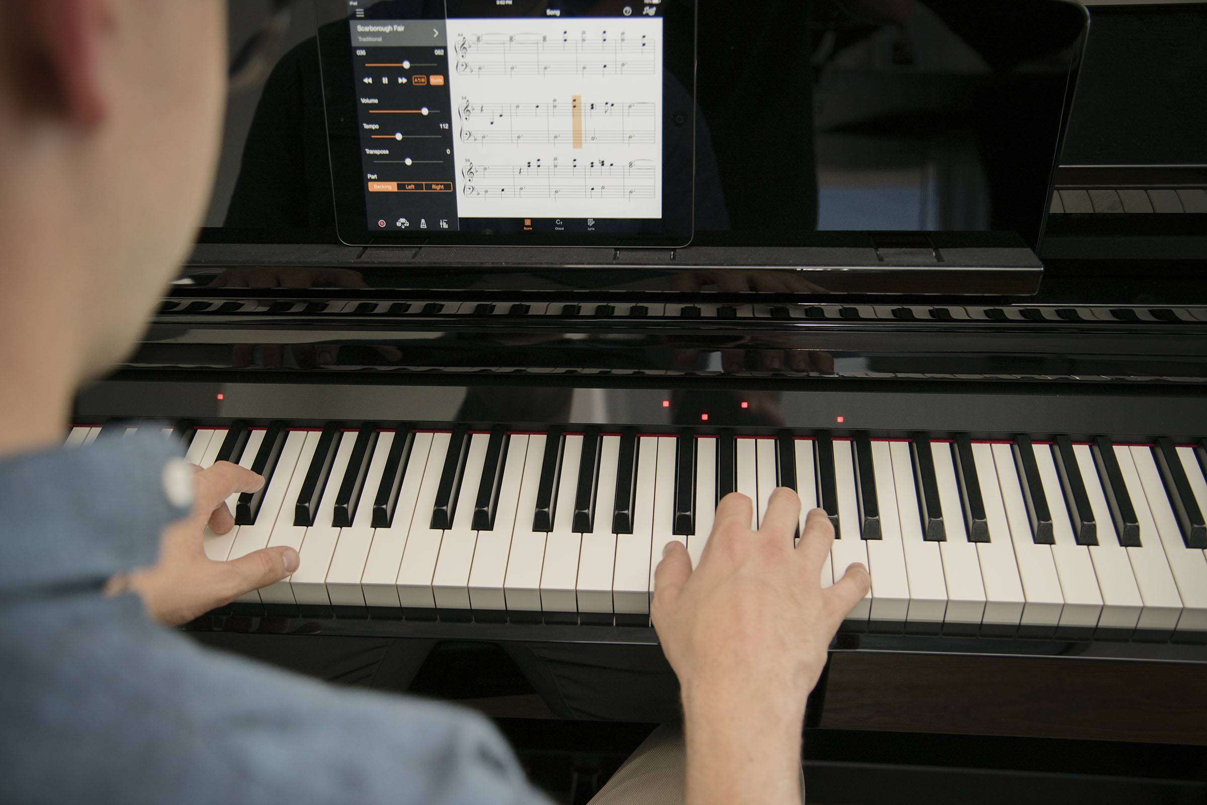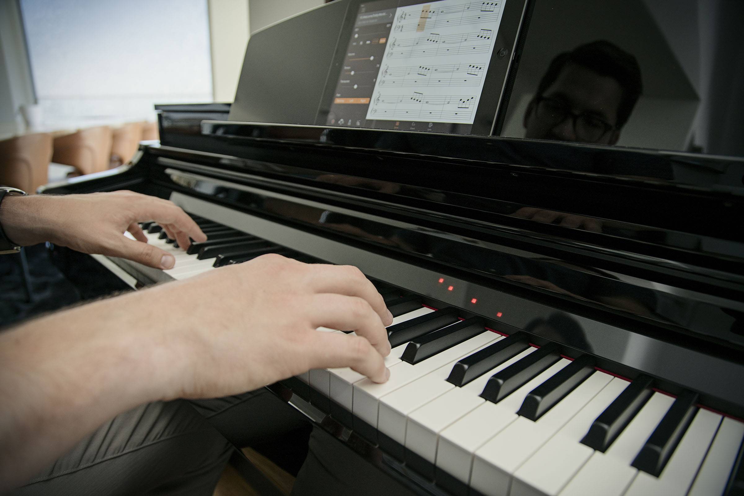 Clavinova CSP將讓您體驗到彈奏鋼琴是多么容易、編寫樂曲是多么有趣。專門開發(fā)的Clavinova Smart Pianist應(yīng)用程序可以分析您想要彈奏的曲子,然后變成鋼琴伴奏樂譜。只需要跟隨下落式引導(dǎo)燈彈奏就行了!