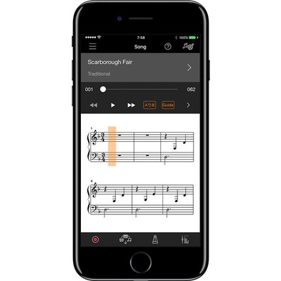 該App可以讓您回放預置的樂曲和其他樂曲數據(MIDI)。您可以享受聆聽它們的樂趣,也可以在播放的過程中跟彈練習。
