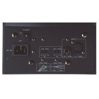 MSP7 STUDIO 的輸入配置了平衡的XLR-型接口。 這種接口為專業器材提供了直接連接的兼容性,可以使用平衡的線路信號,即使使用較長的線纜,也不會造成音質的下降。 后面板的控制器有連續輸入靈敏度控制器和切除開關,可以在4檔和3檔位置間調節低音和高音,對應檔為 (+1.5 dB/0 dB/-1.5 dB/-3 dB ,50 Hz 和 +1.5 dB/0 dB/-1.5 dB , 10 kHz),能夠使系統的響應與房間形成一致。 另外還有低切開關(FLAT, 80 Hz, 100 Hz) ,可在MSP7 STUDIO搭接SW10 STUDIO 超低音音箱時使用。 AC電源線可拔除,便于音箱的運輸和安裝。