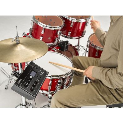 將EAD10使用在網狀鼓皮和靜音銅鈸的鼓組上,創造全新的傳統鼓組。在每個鼓上都裝有觸發器的情況下,演奏PCM音效并錄制原始音色(包括來自感應器裝置的麥克風傳感器的鈸音),讓演奏靜音鼓組時可以降低一定程度的音量,同時又能將真實的鼓組音色透過耳機和揚聲器輸出,享受全新的演奏體驗。