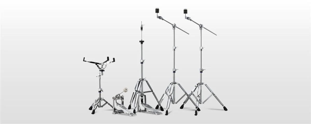 在這裝置中的所有支撐腳都有著非常穩(wěn)定的雙支撐結(jié)構(gòu)。硬件本身十分輕,但它結(jié)實的特性配合鏈條式腳踏板便可以輕松支持重型搖滾擊打。
