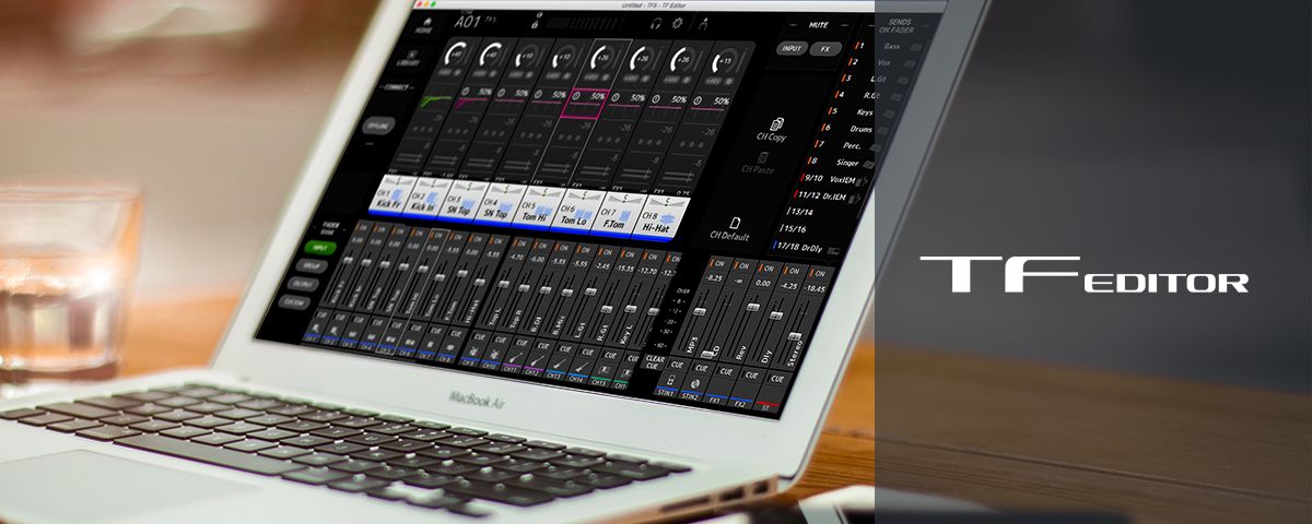 TF Editor 軟件用于Windows 以及 Mac 電腦,可以提供您對于TF調音臺的完整的脫機編輯和設定功能。場景和預設管理功能將可獲得通過電腦鍵盤輸入的便利性。除了隨時隨地可以脫機編輯調音臺參數設定以外,TF Editor 也可以和TF StageMix 以及 MonitorMix 軟件同時使用。一臺具備多點觸摸屏功能的Windows系統電腦將可以模擬與調音臺界面相同的操控體驗。如果使用無線網絡,一臺電腦將可以便捷地成為一臺遠程混音設備。多達3臺運行TF Editor 或者 StageMix 的設備可以同時連接使用。