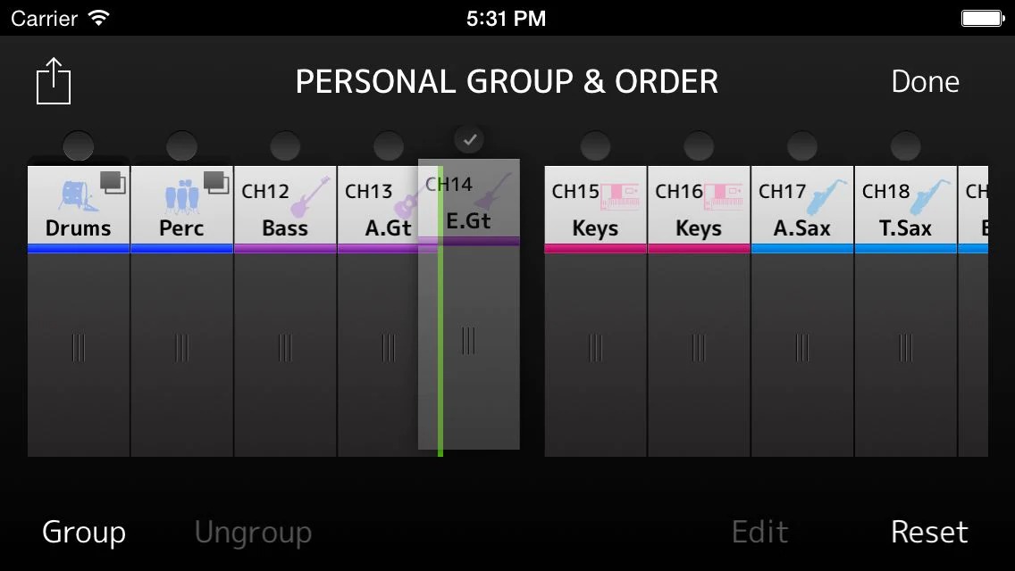 每一位表演者都可以輕松地控制分配給自己的 MIX / MATRIX / AUX 母線,而無需處理復雜的設定。他們還可以創建自己的編組設置(Group),從而實現更為簡便的調整:比如通過1個推子來控制所有電平。即使是大型樂隊也可以使用這種根據個人需要來進行的控制。這樣一來也減少了對于現場調音師的溝通需求。