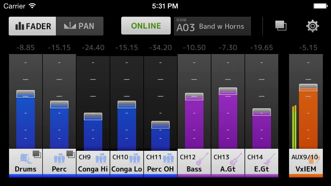 MonitorMix 軟件可以用于無線連接 RIVAGE PM / CL / QL / TF 調音臺,通過該軟件用戶可以實現 MIX / MATRIX / AUX 混音,多達10臺 iOS / Android 設備可以同時在線操作。