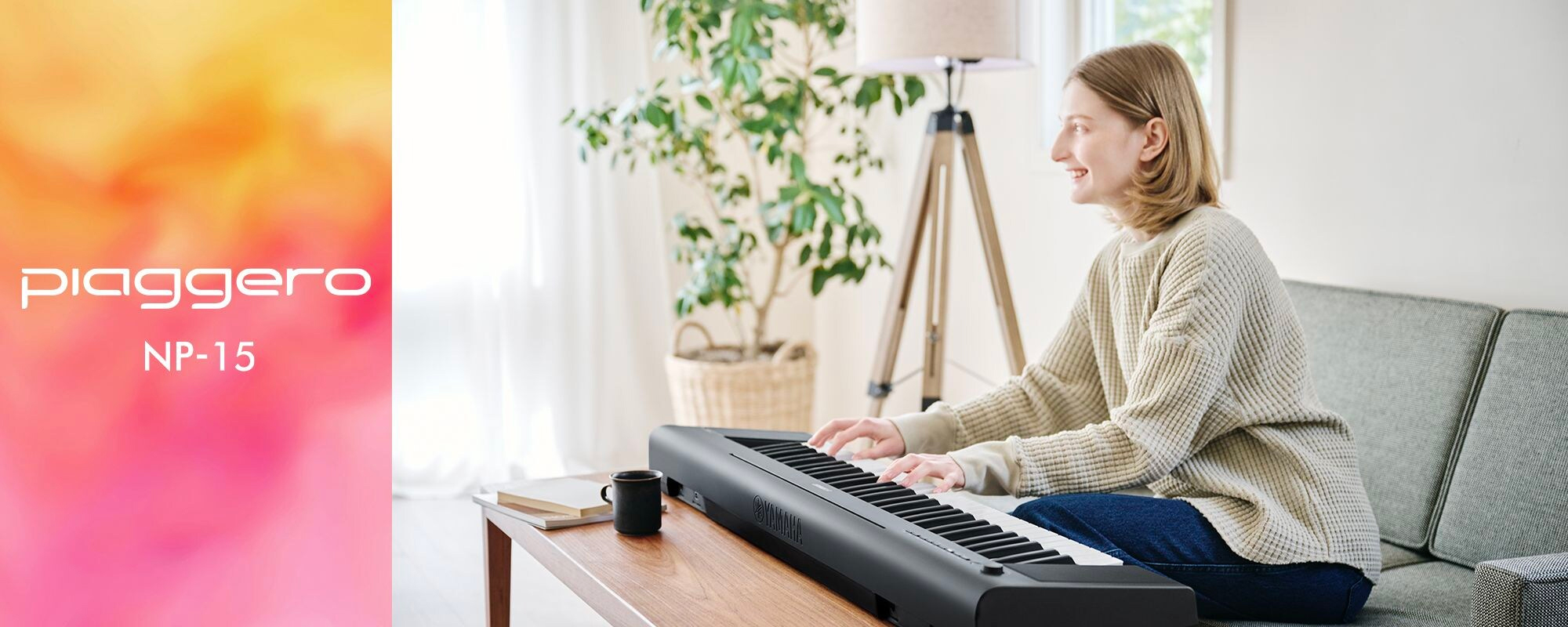 NP-15屬于 "Piaggero "系列,結(jié)合了 "Piano(鋼琴) "和 "leggero(輕快的) "一詞,后者是一個音樂術(shù)語,意思是 "輕快的、輕巧的"。正如其名,NP-15非常輕,即使對于便攜式鍵盤來說也是如此,因此你可以把它帶到任何地方。在室內(nèi)、室外,甚至在旅行中,都可以放心地把它帶到你喜歡的地方去練習(xí)。