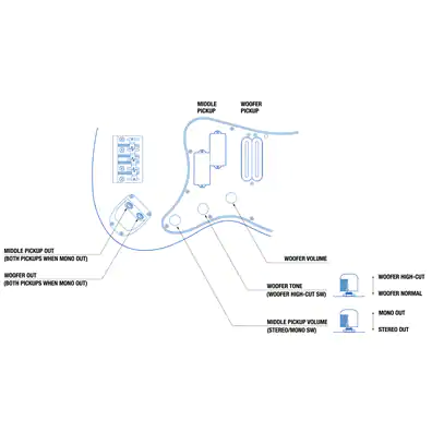 控制旋鈕 | Woofer P.U. Volume, Middle P.U. Volume with Push-Pull Stereo/Mono Switch, Woofer Tone with Woofer High Cut Switch | |